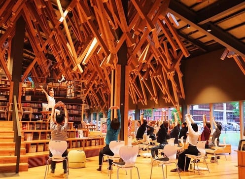 新国立競技場をデザインした世界的建築家、隈研吾氏による設計で、日本の伝統工法を用いた天井や、棚田をイメージした起伏のある床面など、ユニークな空間構成が特徴です。この独創的な空間は、好奇心を刺激し、新しい発見や創造性を引き出します。